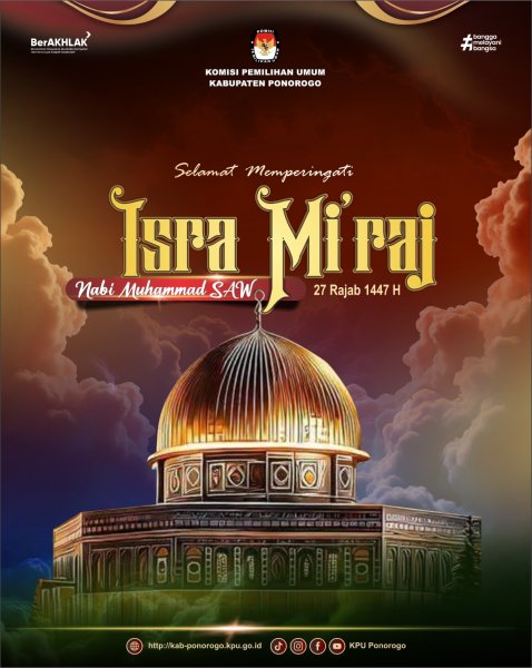 Peringatan Isra Mi’raj Nabi Muhammad SAW merupakan momentum spiritual yang sarat dengan nilai keteladanan, keimanan, dan penguatan moral. Peristiwa luar biasa yang terjadi pada tanggal 27 Rajab ini menjadi pengingat bagi umat Islam akan pentingnya ketaatan, kejujuran, dan tanggung jawab dalam menjalankan amanah kehidupan, termasuk dalam pelaksanaan tugas-tugas kelembagaan. Isra Mi’raj mengajarkan tentang perjalanan Nabi Muhammad SAW dalam menerima perintah salat lima waktu, yang menjadi simbol kedisiplinan, kepatuhan terhadap aturan, serta konsistensi dalam menjalankan kewajiban. Nilai-nilai tersebut sejalan dengan semangat yang dijunjung tinggi oleh Komisi Pemilihan Umum (KPU), khususnya KPU Kabupaten Ponorogo, dalam menjalankan tugas sebagai penyelenggara pemilu yang berintegritas. Sebagai lembaga negara yang diberi amanah menyelenggarakan pemilihan umum, KPU Kabupaten Ponorogo senantiasa berkomitmen untuk bekerja secara profesional, mandiri, dan transparan. Amanah yang diemban tidak hanya bersifat administratif, tetapi juga moral, sebagaimana teladan Nabi Muhammad SAW yang dikenal sebagai pribadi yang jujur dan dapat dipercaya (al-amin). Momentum Isra Mi’raj menjadi sarana refleksi bagi seluruh jajaran KPU Kabupaten Ponorogo untuk terus meningkatkan kualitas kinerja kelembagaan. Integritas, akuntabilitas, serta pelayanan kepada masyarakat harus senantiasa menjadi landasan utama dalam setiap tahapan penyelenggaraan pemilu. Dengan meneladani nilai-nilai luhur Isra Mi’raj, diharapkan seluruh insan KPU semakin kuat dalam menjaga netralitas, keadilan, dan kepercayaan publik. Melalui peringatan Isra Mi’raj Nabi Muhammad SAW ini, KPU Kabupaten Ponorogo mengajak seluruh elemen masyarakat untuk bersama-sama memperkuat nilai persatuan, kedamaian, dan tanggung jawab demokrasi. Semoga semangat Isra Mi’raj dapat menjadi sumber inspirasi dalam mewujudkan pemilu yang berintegritas, berkualitas, dan bermartabat. (ed. d2g)