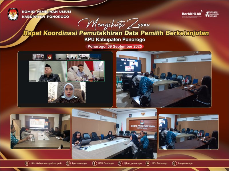 #Temanpemilih Koordinasi terkait pemilih berkelanjutan terus bergulir berjalan, hal ini selaras dengan kegiatan yang di laksanakan Selasa, 10/9/2025 dengan via zoom meeting daring bersama KPU Provinsi Jawa Timur dan di ikuti seluruh 38 KPU Kabupaten/Kota. Berkenan pula hadir dalam hal ini, Ketua KPU Republik Indonesia Mochammad Afiffudiin, dalam pemaparan sambutan beliau menerangkan bahwa pemutakhiran data pemilih berkelanjutan merupakan amanat undang-undang.