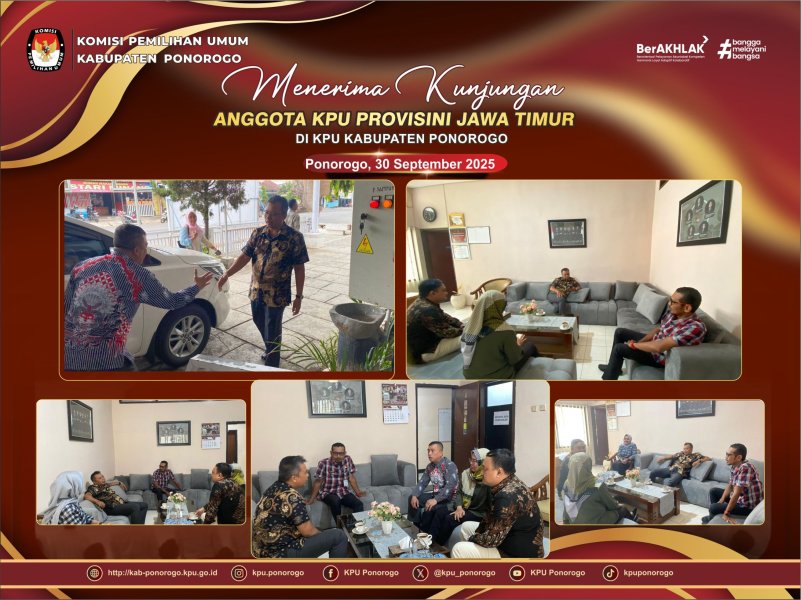 #TemanPemilih Komisi Pemilihan Umum (KPU) Kabupaten Ponorogo menerima kunjungan kerja dari Anggota KPU Provinsi Jawa Timur Divisi Data dan Informasi, Insan Qoriawan , pada Senin (29/10).