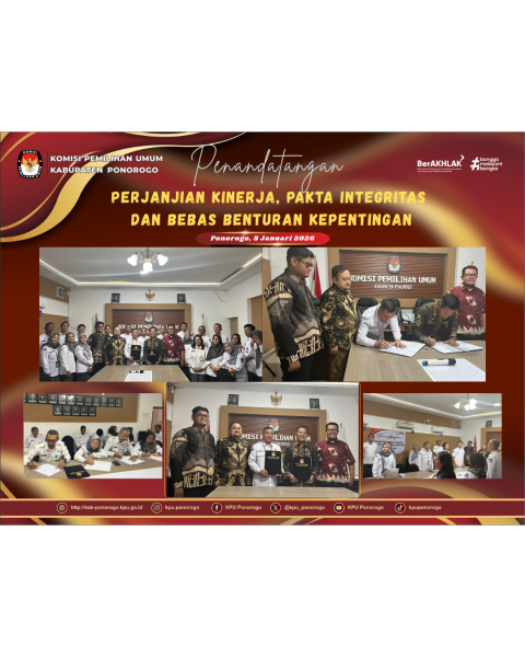 Kegiatan yang digelar di Aula KPU Kabupaten Ponorogo tersebut dilaksanakan secara serentak dengan KPU di seluruh Indonesia. Dalam kegiatan tersebut, penandatanganan Perjanjian Kinerja dilakukan secara bersamaan antara Ketua KPU Kabupaten Ponorogo dengan Sekretaris KPU Kabupaten Ponorogo sebagai bentuk komitmen pelaksanaan tugas dan tanggung jawab kelembagaan.