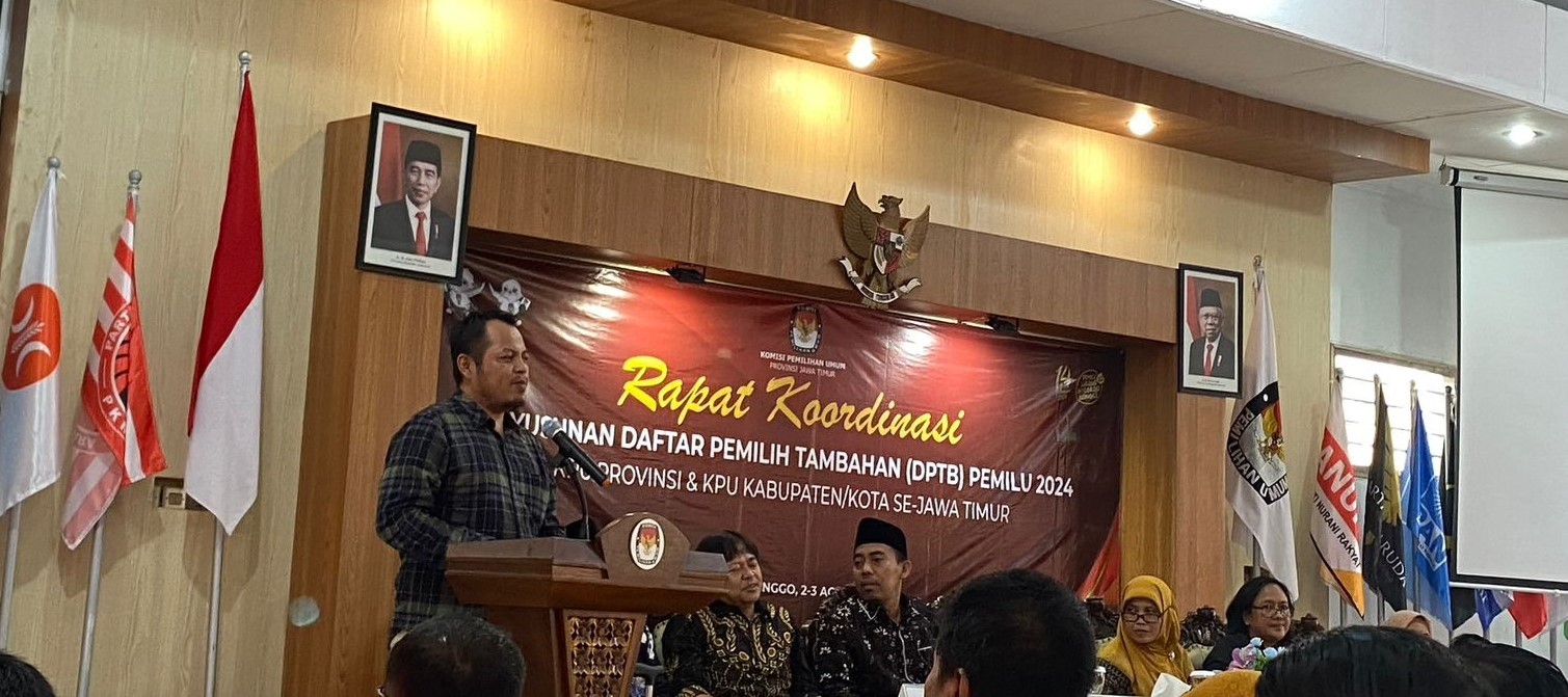 PONOROGO -kab-ponorogo.kpu.go.id- KPU Kabupaten Ponorogo mengikuti Rapat Koordinasi Penyusunan DPTb Pemilu 2024 yang diselenggarakan oleh KPU Provinsi Jawa Timur di Aula Kantor KPU Kota Probolinggo, jalan Panglima Sudirman No. 514 Kota Probolinggo, pada hari Rabu-Kamis, 2-3 Agustus 2023.