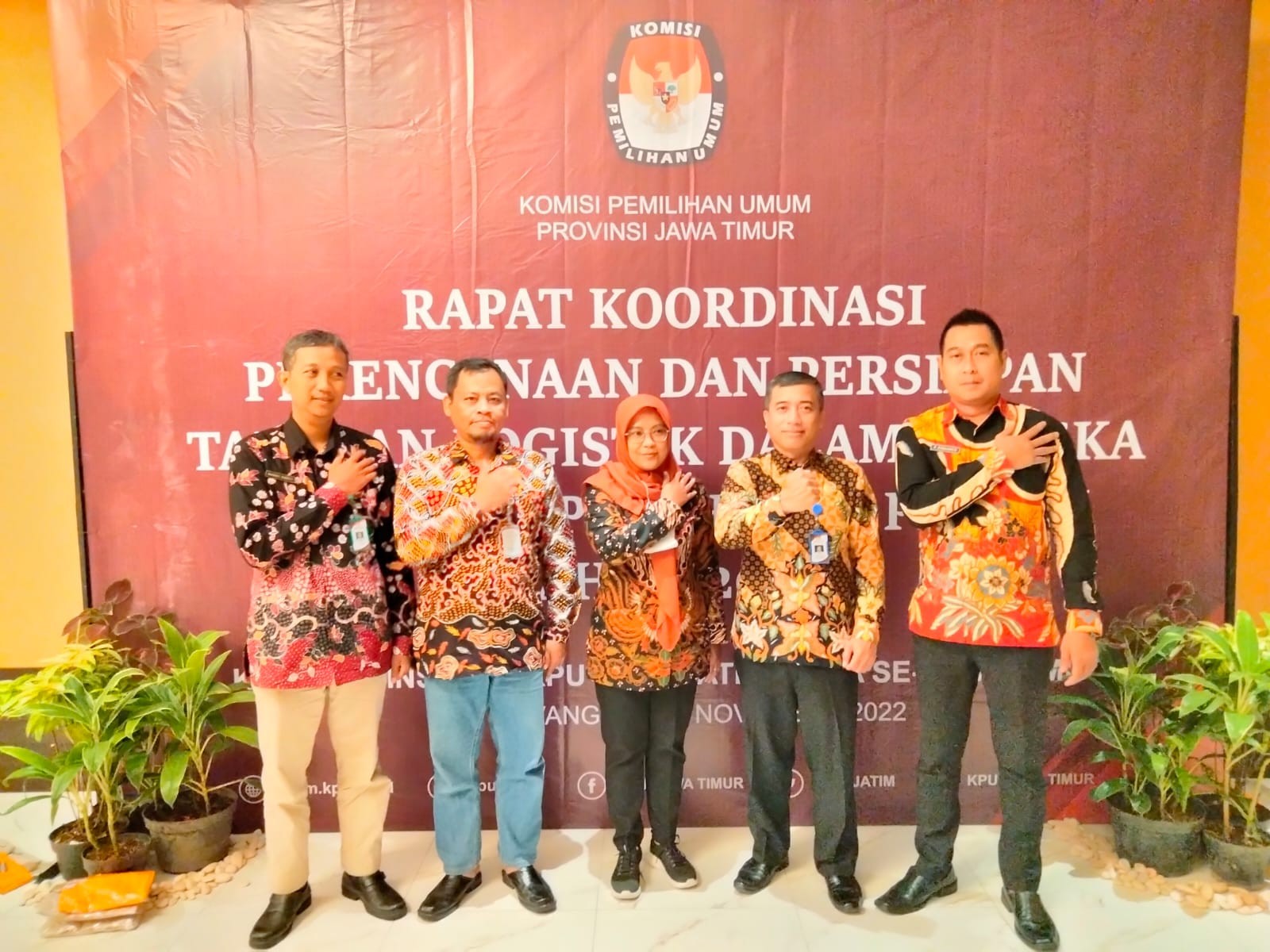 Rakor digelar di Pendopo Sabha Swagata Blambangan Banyuwangi pada 8 sampai 10 November 2022. Dari KPU Kabupaten Ponorogo turut hadir Munajat, Ketua, Zainal Arifin, Sekretaris, Andina Endartaka Sari, Kasubbag Umum dan Logistik, Nanang Subekti, Pejabat Pengadaan serta Pandu Risdianto, Operator. (d2g)