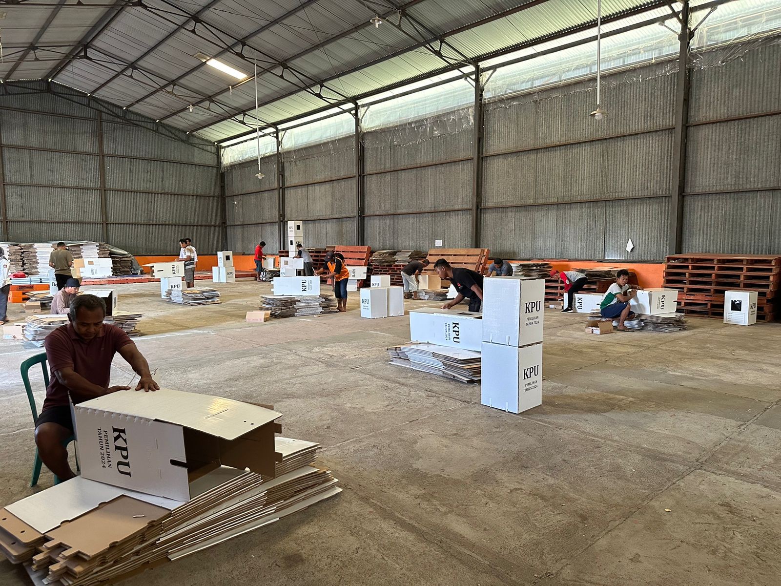Gaguk menjelaskan, KPU Kabupaten Ponorogo mengerahkan 20 pekerja yang merupakan warga sekitar gudang dan sudah berpengalaman untuk merakit kotak suara. Gaguk menargetkan, dalam 2 hari ini perakitan kotak suara sudah selesai.