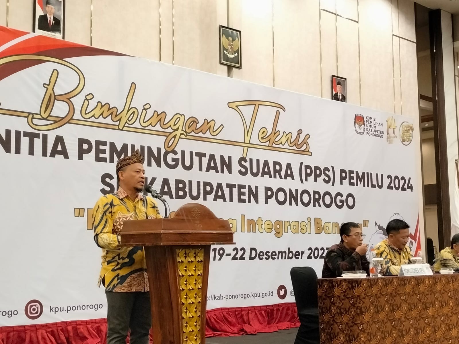 Madiun -kab.ponorogo.kpu.go.id- Bimbingan teknis (Bimtek) pemungutan suara dalam pemilu serentak tahun 2024 dilaksanakan Komisi Pemilihan Umum Kabupaten Ponorogo pada tanggal 18-22 Desember di Ball Room Hotel Sun City Kota Madiun.