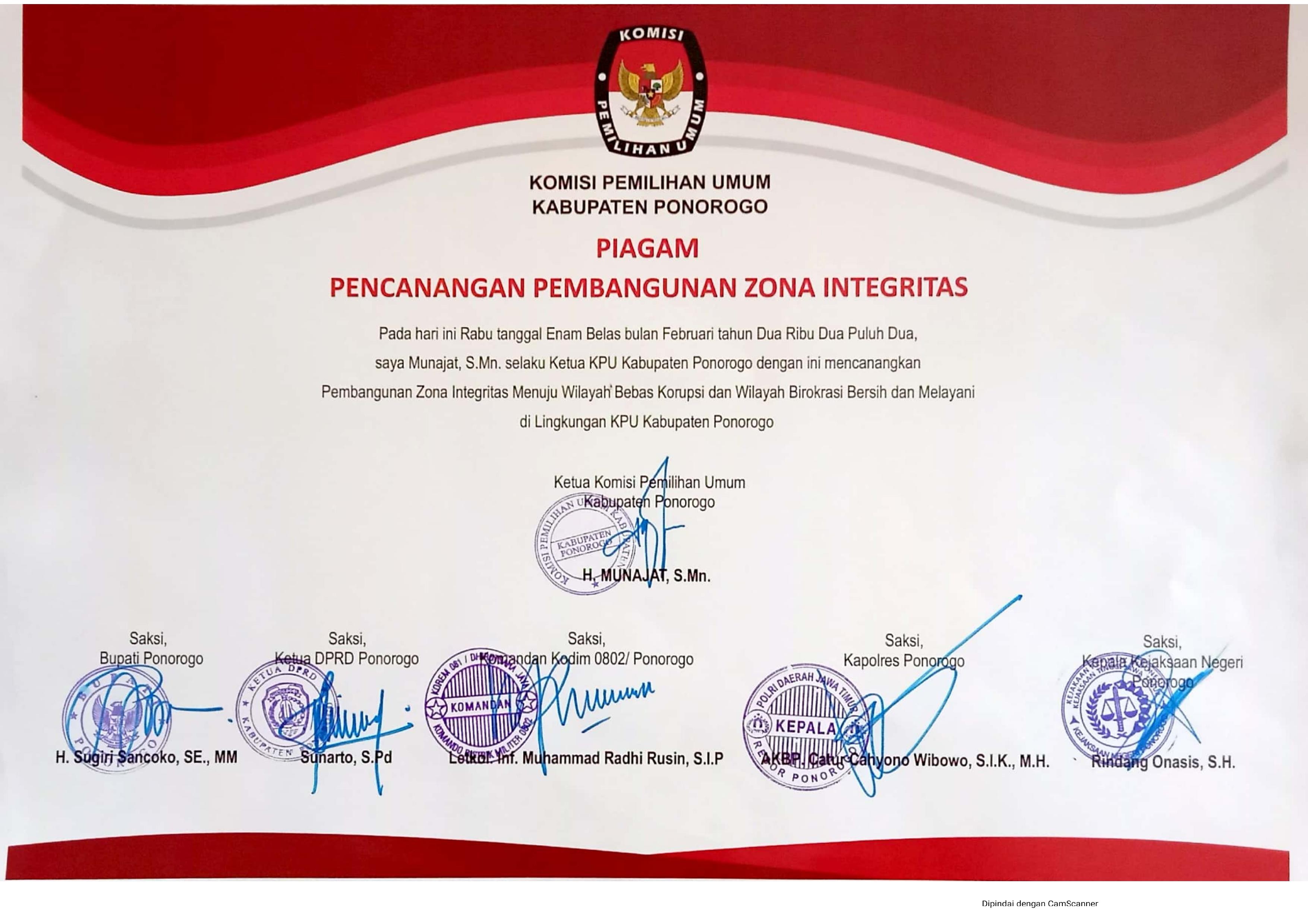 KPU Kabupaten Ponorogo Tandatangani Piagam Pencanangan Pembangunan Zona Integritas