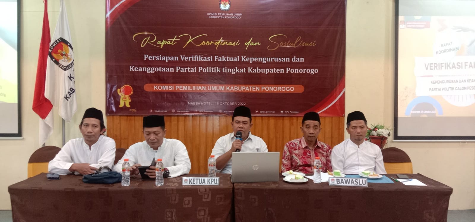 KPU Ponorogo Gelar Rapat Koordinasi Dan Sosialisasi Persiapan Verifikasi Faktual Kepengurusan dan Keanggotaan Partai Politik Tingkat Kabupaten Ponorogo