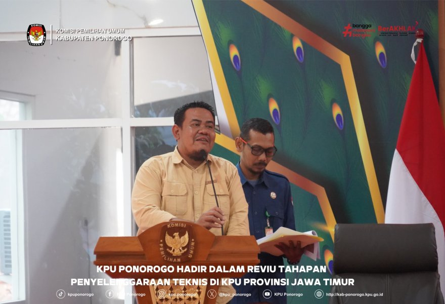 #TemanPemilih, KPU Ponorogo Hadir Dalam reviu pelaksanaan tahapan teknis Pemilu dan Pemilihan 2024 lewat M. Arwan Hamidi Ketua Divisi Teknis Penyelenggaran KPU Kab. Ponorogo dan Sutrisno Kassubag Teknis dan Hukum , Acara ini selenggarakan Komisi Pemilihan Umum Provinsi Jawa Timur (KPU Jatim) dengan tema “Berbagi Pengalaman dalam Rangka Reviu Pelaksanaan Tahapan Teknis Pemilu dan Pemilihan Gelombang 2”. Bertempat di Aula Lt. 2 Kantor KPU Provinsi Jawa Timur, Jl. Raya Tenggilis No. 1-3, Surabaya pada Selasa, 27 Mei 2025. Ketua KPU Jatim, Aang Kunaifi dalam sambutannya menuturkan bahwa Pemilu dan Pemilihan 2024 telah selesai dilaksanakan.