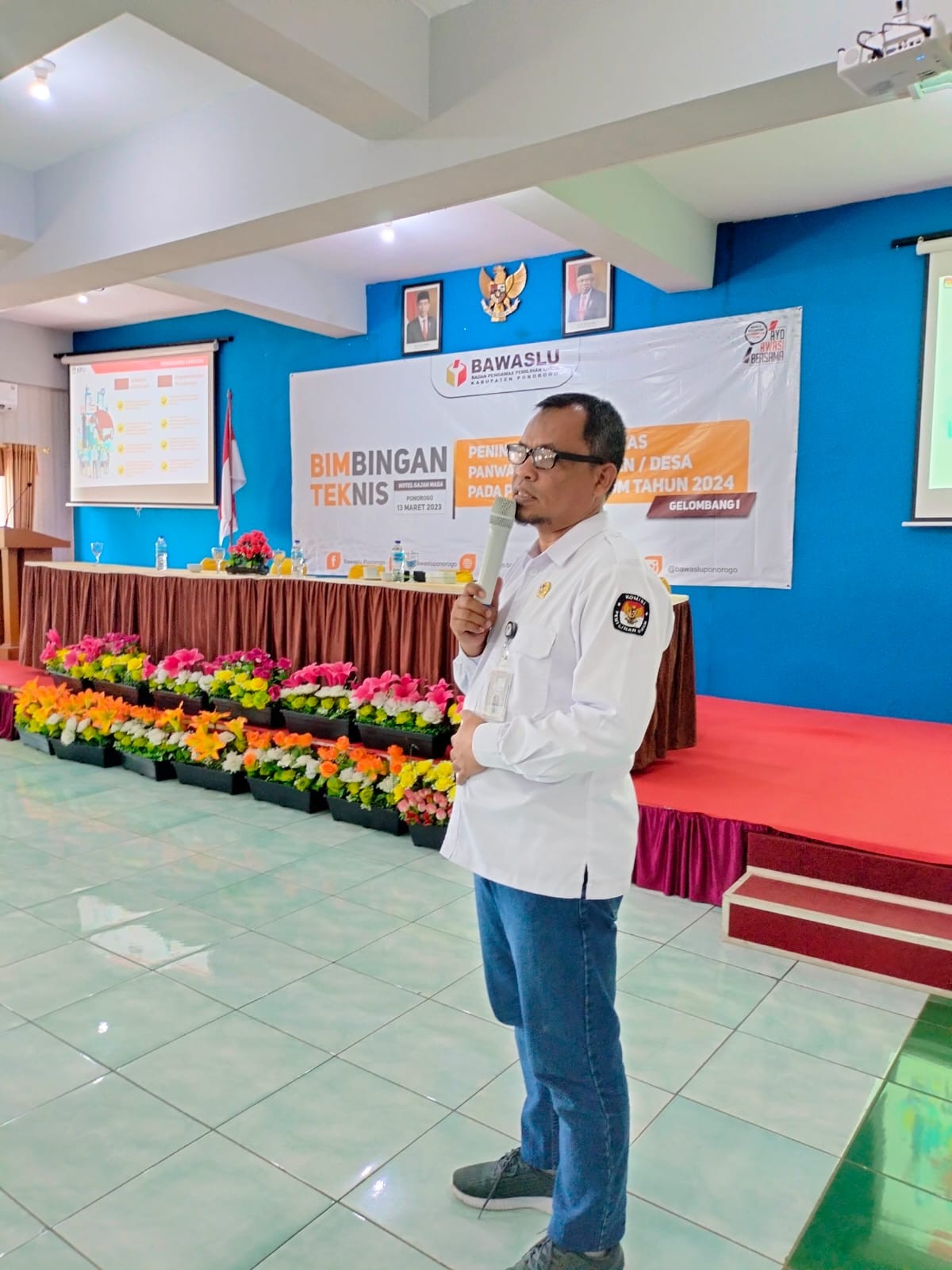Bimtek dilaksanakan di Hall Hotel Gajah Mada Ponorogo. Hadir dalam acara Pimpinan Bawaslu Kabupaten Ponorogo beserta staf dan seluruh Panita Pengawas Desa dan Kelurahan se-Kabupaten Ponorogo pada senin 13/3/2023. (d2g)