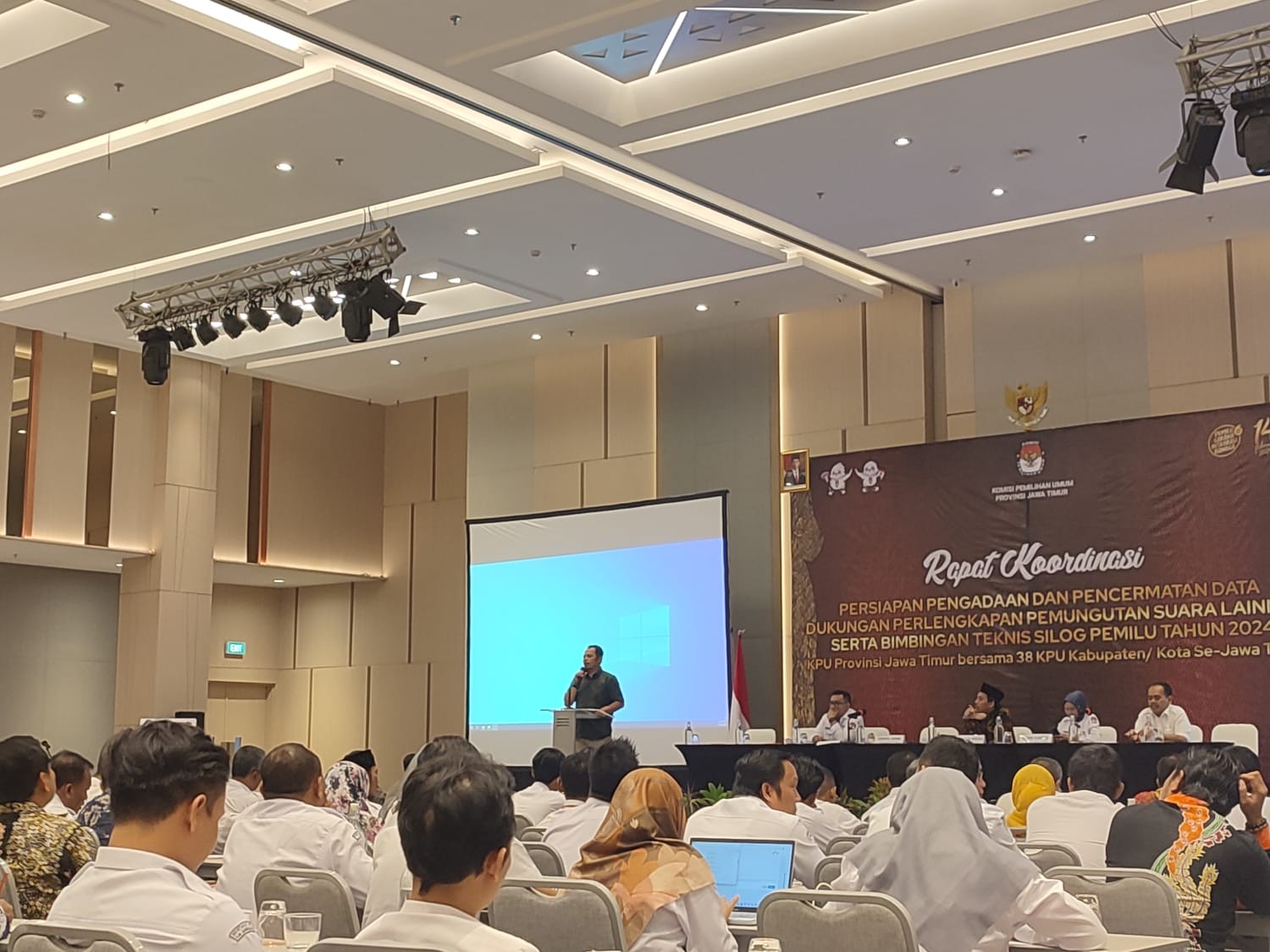 Sementara itu, dikesenptan ini pula Divisi Perencanaan dan Logistik KPU Jatim, Miftahur Rozaq menyampaikan, “bahwa secara teknis pertemuan ini membahas tentang pengetahuan dan pemahaman mengenai regulasi berkaitan dengan pengelolaan logistic pada pemilu serentak tahun 2024.