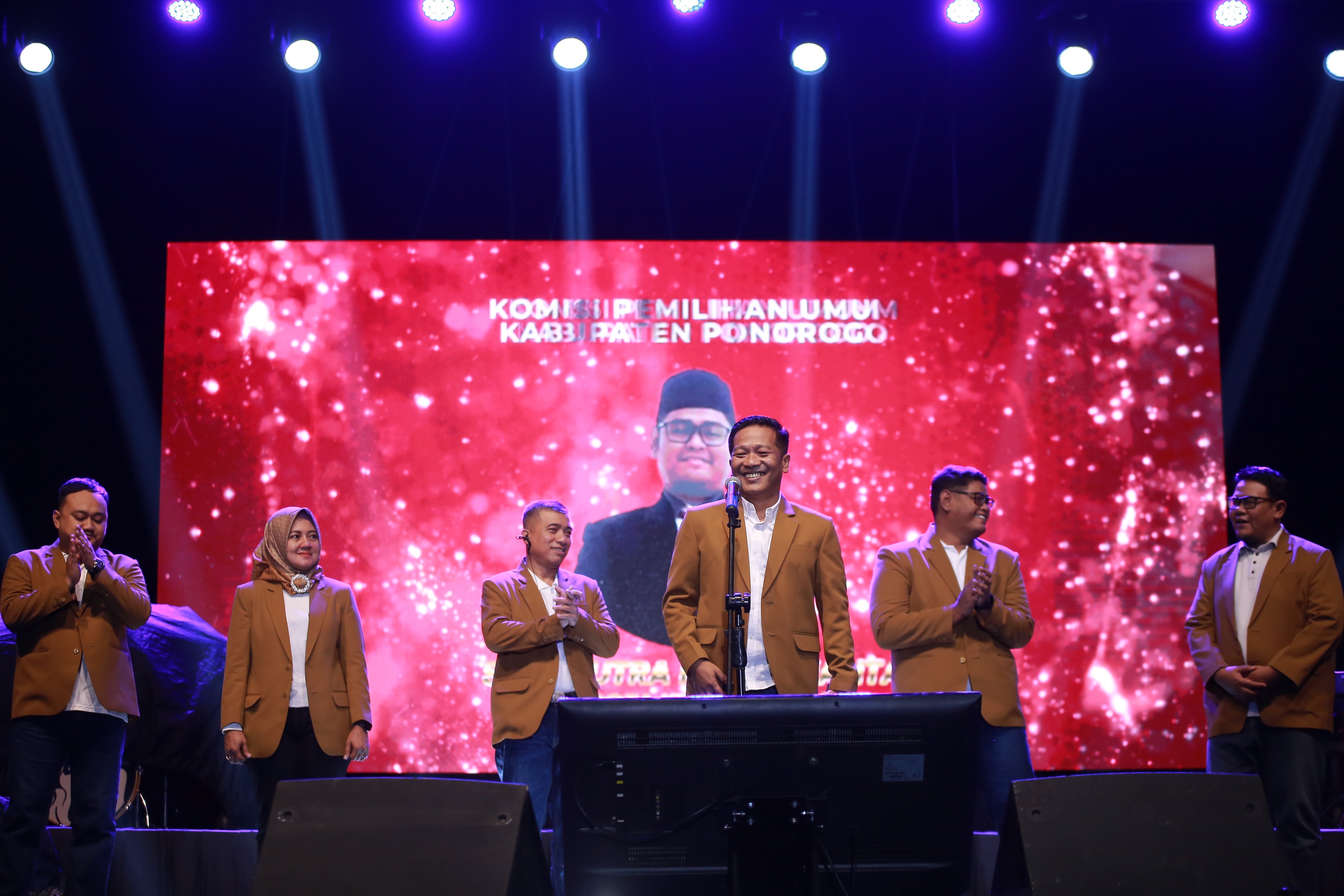 PONOROGO - kab-ponorogo.go.id - Komisi Pemilihan Umum Kabupaten Ponorogo laksanakan peluncuran Pemilihan Bupati dan Wakil Bupati Tahun 2024 di Sentra Industri Batik Jl. Trunojoyo Ponorogo pada Rabu (17/7/2024) malam.