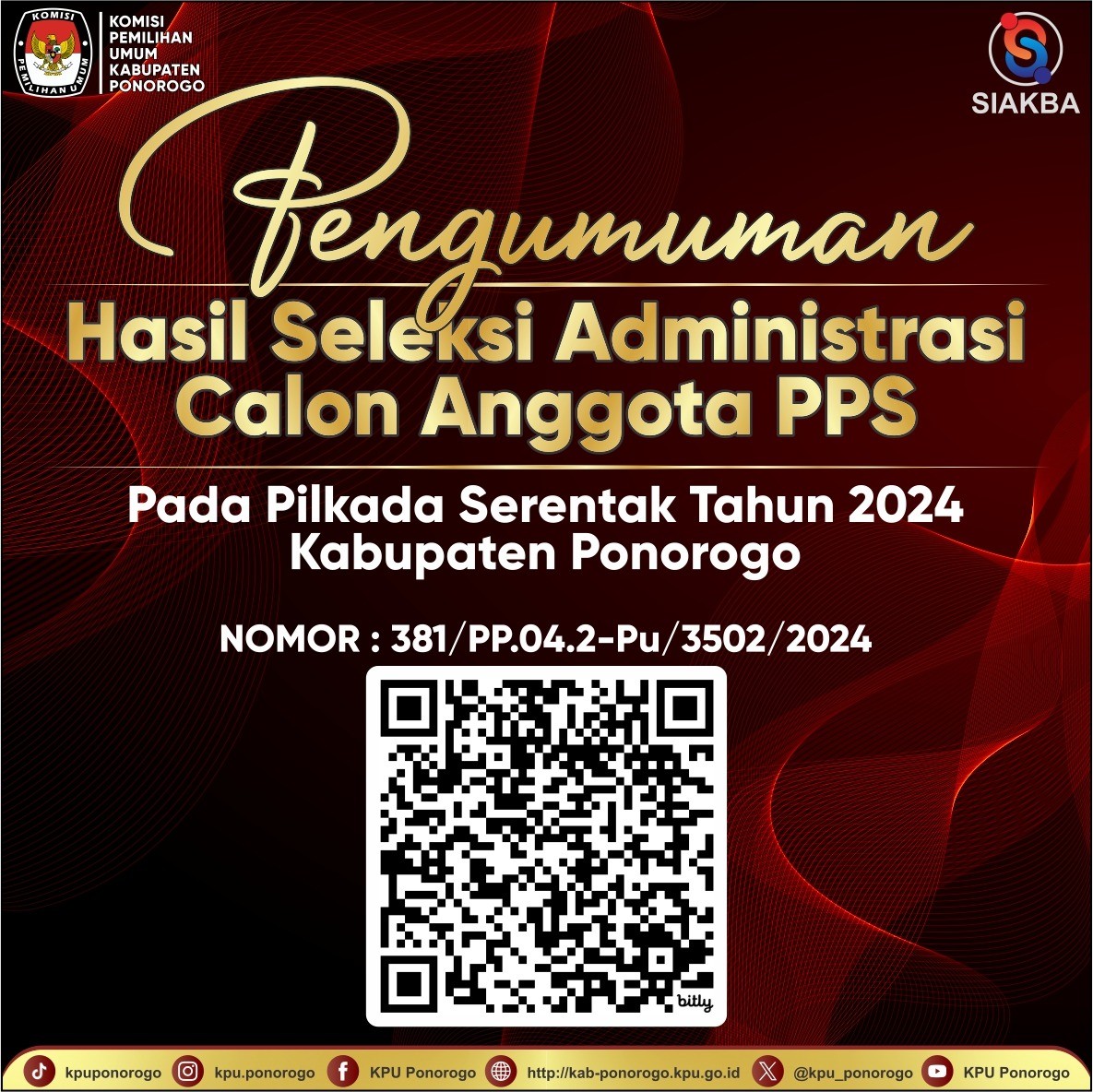 Sehubungan dengan Komisi Pemilihan Umum Kabupaten Ponorogo telah melaksanakan tahapan Penelitian Administrasi Calon Anggota Panitia Pemungutan Suara untuk Pemilihan Gubernur dan Wakil Gubernur Jawa Timur serta Bupati dan Wakil Bupati Ponorogo Tahun 2024.