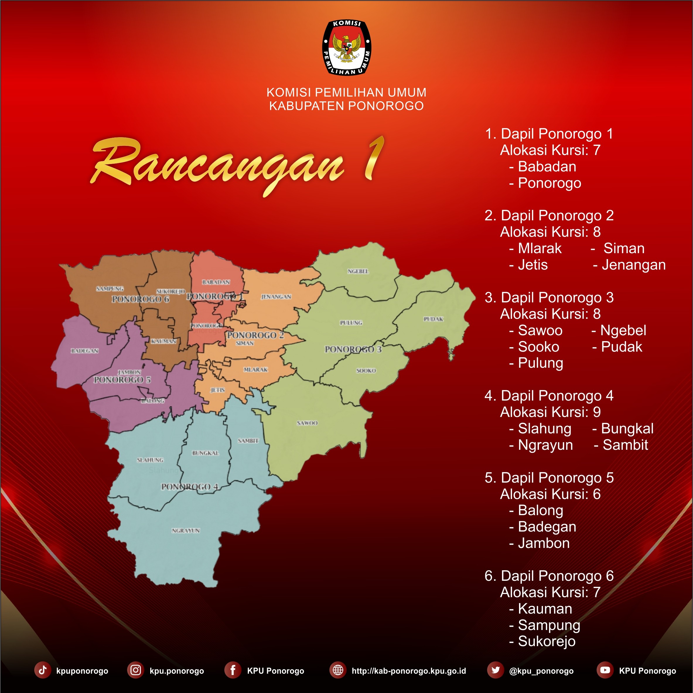 Berikut disampaikan Pengumuman Nomor Rancangan Penataan Daerah Pemilihan dan Alokasi Kursi Anggota DPRD Kabupaten Ponorogo