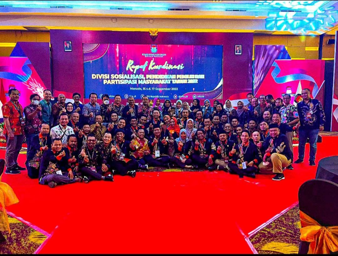 MANADO - kab-ponorogo.kpu.go.id - Manado,17 September 2022, Tepatnya tanggal 15-17 September 2022 KPU Republik Indonesia menggelar Rapat Koordinasi Divisi Sosialisasi, Pendidikan Pemilih, dan Partisipasi Masyarakat Tahun 2022. Rakoor yang diikuti oleh 1056 peserta dari anggota KPU Provinsi/KIP Aceh, Anggota KPU/KIP Kabupaten/Kota yang membidangi Divisi Sosialisasi, Pendidikan Pemilih, dan Partisipasi Masyarakat, Kabag pada Sekretariat KPU Provinsi/KIP Aceh dan Kepala Subbagian pada Sekretariat KPU/KIP Kabupaten/Kota bertempat di Novotel Manado Golf resort dan Covention Center Kota Manado Sulawesi Utara.