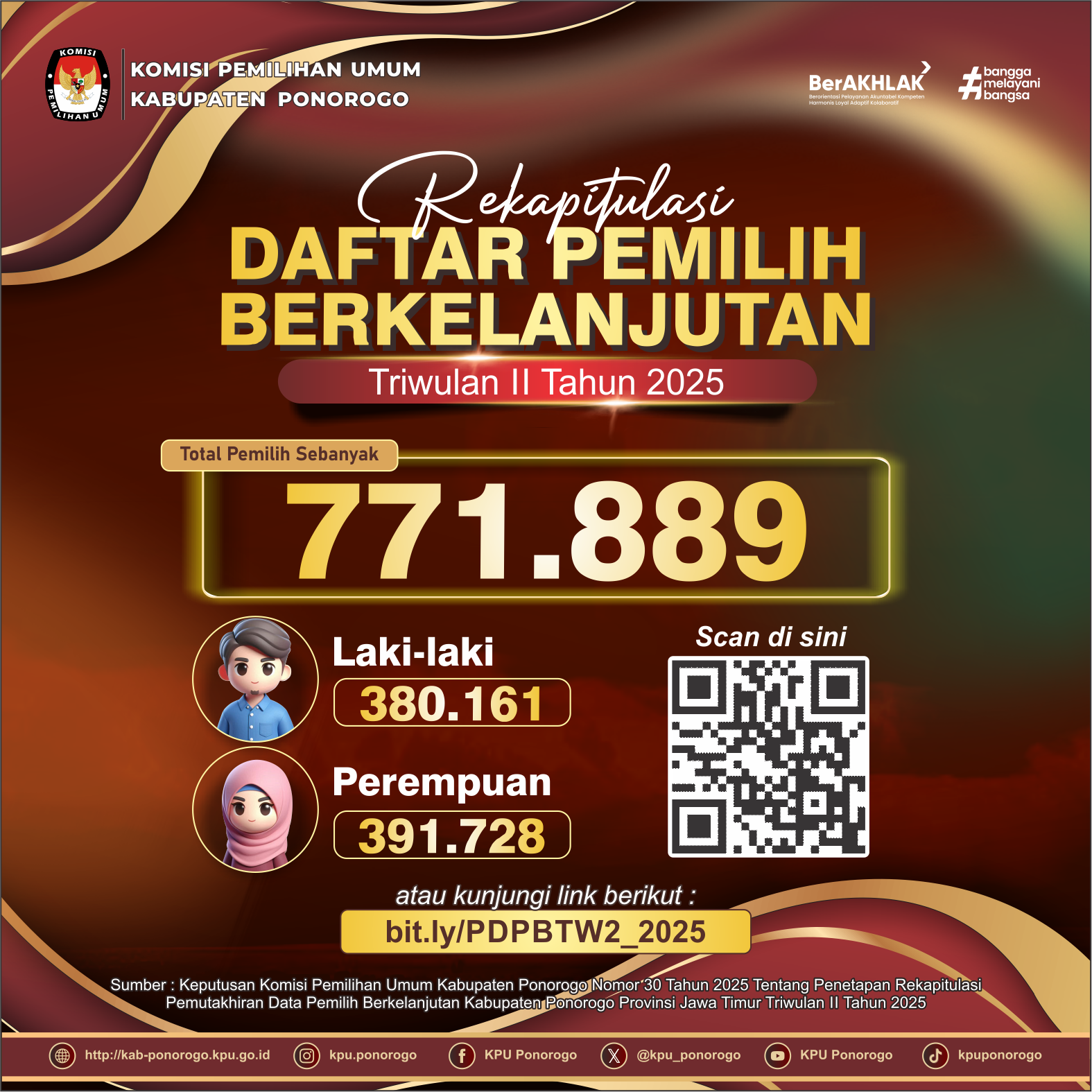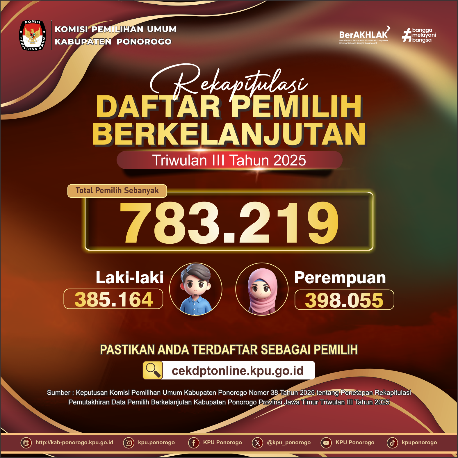 Pemutakhiran Daftar Pemilih Berkelanjutan (PDPB) Pemutakhiran Daftar Pemilih Berkelanjutan (DPB) Tahun 2025 Triwulan II Pemutakhiran Daftar Pemilih Berkelanjutan (DPB) Tahun 2025 Triwulan III Bagikan : Dilihat 157 Kali.