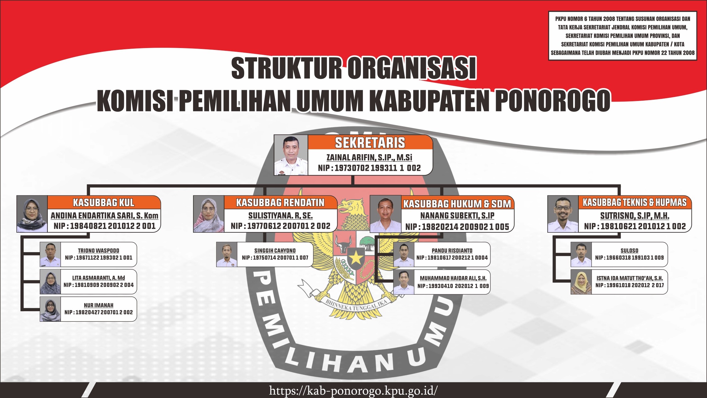 Struktur Organisasi STRUKTUR KPU PONOROGO STRUKTUR SEKRETARIAT KPU PONOROGO Bagikan : Dilihat 199 Kali.